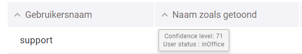 Sobald Sie den Mauszeiger über den Benutzernamen bewegen, erscheint ein kleiner Bildschirm, auf dem die confidence level des Nutzers und sein Benutzerstatus angezeigt werden.
